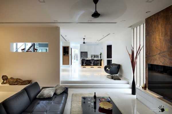 Монохромный контрастный интерьер гостиной уже стал классикой жанра для современных жилищ. Использование только двух цветов для оформления помещения, слегка разбавленное блеском стеклянных и зеркальных поверхностей, смотрится современно, динамично и оригинально.