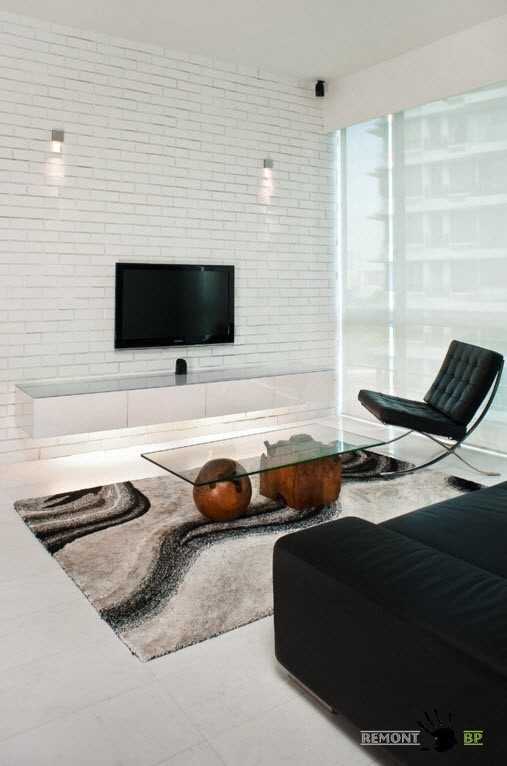 В сочетании с белой отделкой остальных стен и поддержкой черно-белого принта, полученный образ будет весьма гармоничным, сбалансированным.