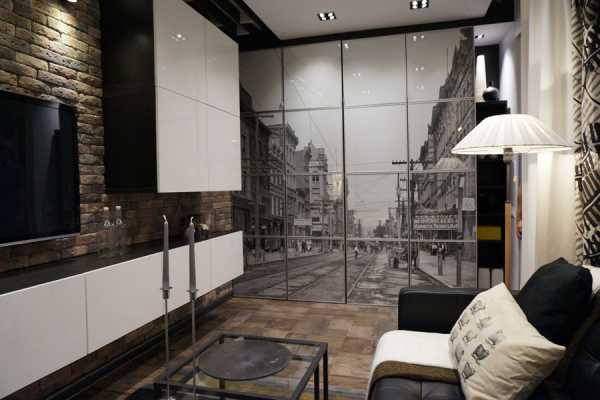 Раздвижные перегородки из прозрачного пластика или зеркальные панели на откосах, потолке, стенах, а также шкаф-купе с зеркалами наполнят пространство светом. А светлая комната никогда не будет казаться маленькой и неуютной — напротив, она будет создана для релакса, семейных разговоров или шумных дружеских вечеринок.