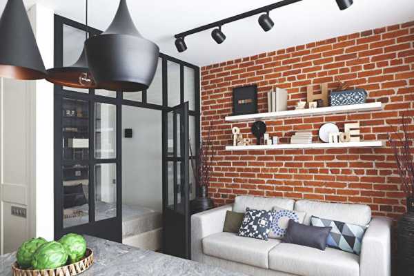 Конечно, стиль лофт любит большие открытые пространства. Но если в вашей гостиной высокие потолки и есть возможность избавиться от лишних перегородок, небольшая площадь не станет помехой. К тому же, это достаточно бюджетное решение, благодаря отсутствию необходимости в отделке стен и покупке дорогой мебели.
