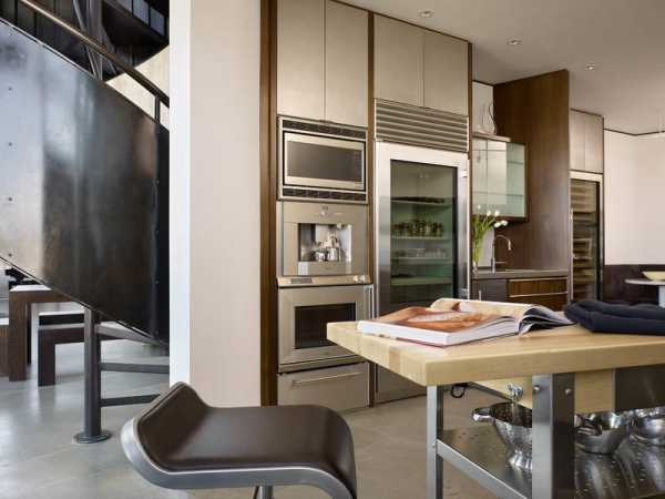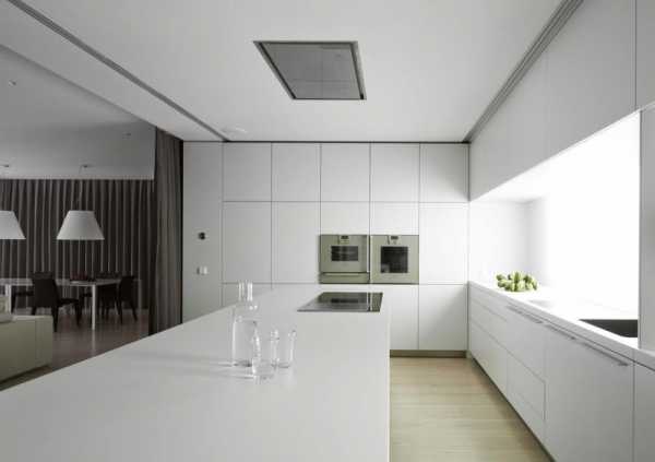 Техника встраивается, чтобы не отвлекала своим видом от простоты и минимализма дизайна, а расположение продумывается до сантиметра, чтобы хозяйке было максимально удобно готовить.