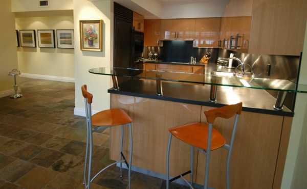 - среди отделки тоже хорошо использовать блестящие поверхности, это могут быть хрустальные люстры, для кухни в стиле арт-деко, зеркала, фартук из закаленного стекла, хромированные стулья или глянцевый кафель на полу;