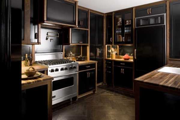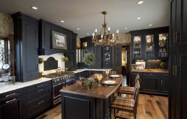 Чёрный – это цвет аристократичности и изысканности. На кухне он смотрится просто роскошно при любом стиле помещения. Особенно выигрывает в этом плане готический дизайн кухни.