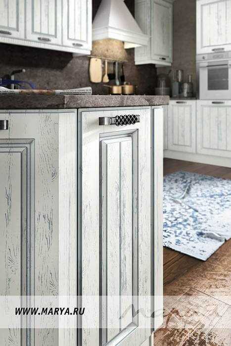 Одной из оригинальных тенденций современности становится смешение ультрасовременной техники и прогрессивных способов отделки с намеренно состаренными элементами или поверхностями. Старинный буфет может соседствовать с гладкими фасадами современного гарнитура, а самая обычная отделка чередоваться с потертыми поверхностями, намеренно облупившейся краской.