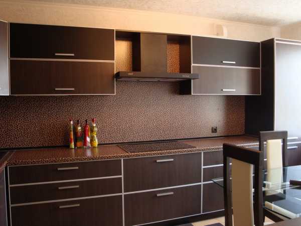 Дополнительный плюс в широком выборе оттенков: от ореха и венге до какао и кофе с молоком. Вне зависимости от оттенка коричневый сочетается практически с любым цветом — хоть спокойным бежевым, хоть с яркой фуксией, поэтому образ кухни можно будет менять практически без усилий: просто сменив декор.