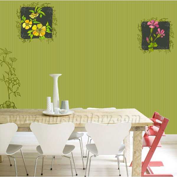 Яркий солнечный цвет, который не оставит равнодушным никого. Такая яркая столовая заставит вас лишний раз улыбнуться и порадоваться даже незначительным событиям. Оранжевый дизайн обоев прекрасно подойдет для помещения, где не хватает солнечного света, но если комната маленькая следует его сочетать с желтым или белым.