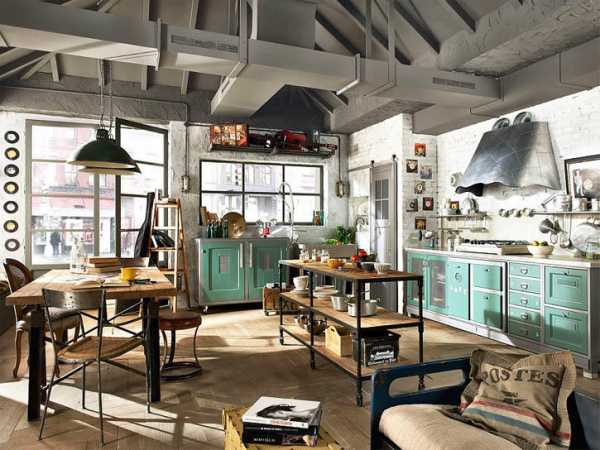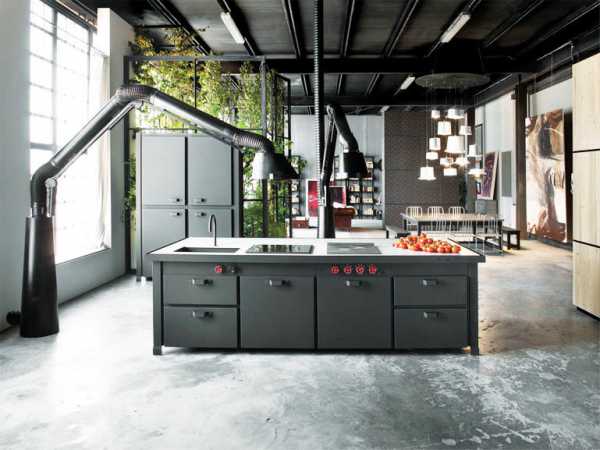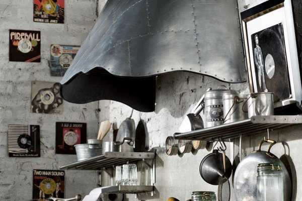 Дизайнеры считают, что при большой кухне можно использовать такой стиль как индастриал (industrial). Он зародился ещё в Америке в 90-е годы прошлого столетия. Этот стиль преподносит к кухне следующие требования: