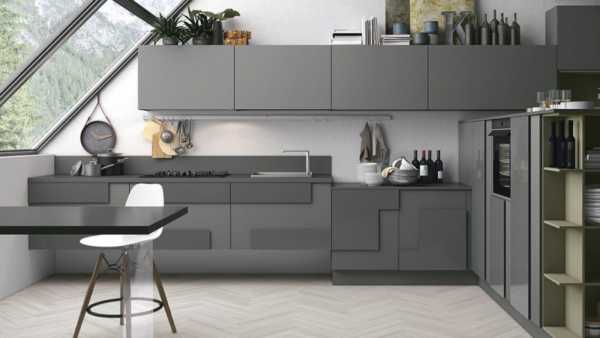 Серый цвет подойдет для сдержанных спокойных людей, которым не очень присущ авантюризм. Он придаст помещению изысканности и оригинальности. Желательно выбирать не самые простые фасады, а с видимой текстурой материала или интересной фрезеровкой.