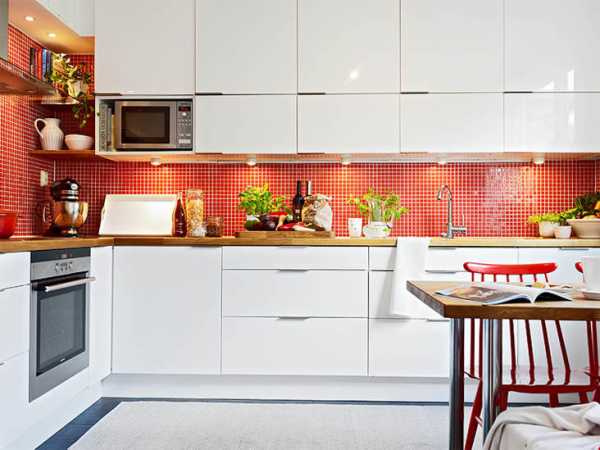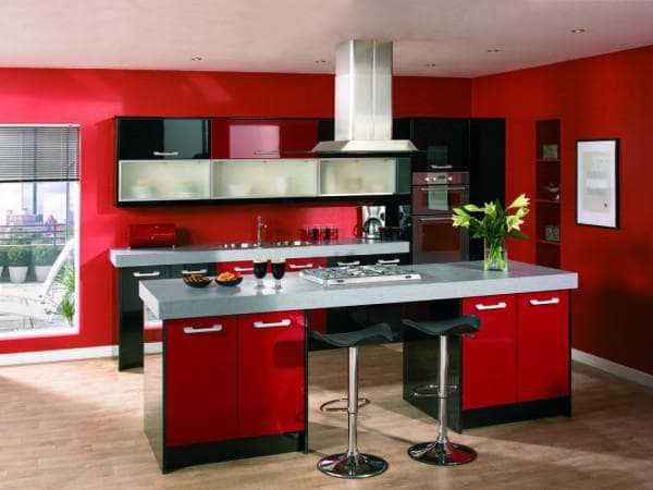 Красный цвет – цвет страсти и неудержимости, поэтому если вы натура романтичная не стоит его выбирать для своей кухни. А если хочется добавить ярких ноток – украсьте обеденный уголок яркими подушками или купите красную посуду.