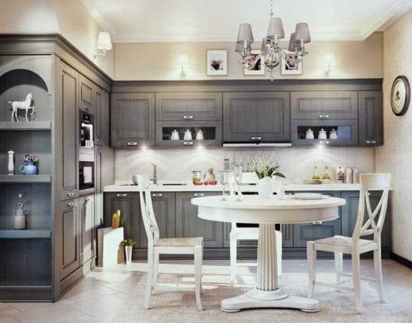 Но светлые оттенки серого могут использоваться для оформления кухни в сдержанном английском стиле, классическом, ампир или прованс.