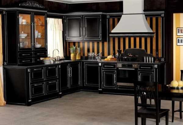 Гарнитур черного цвета в 2018 году будет как нельзя кстати, ведь сегодня в моде оригинальность и черная кухня является именно такой