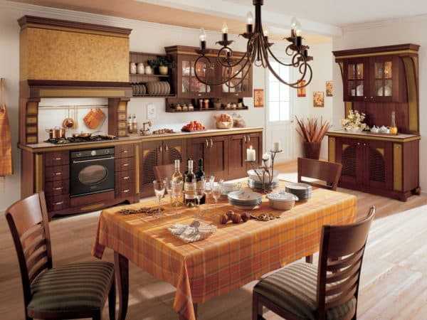Коричневый — традиционное решение для оформления классической кухни. Цвет вкусного шоколада и дорогого дерева говорит о стабильности и спокойствии.