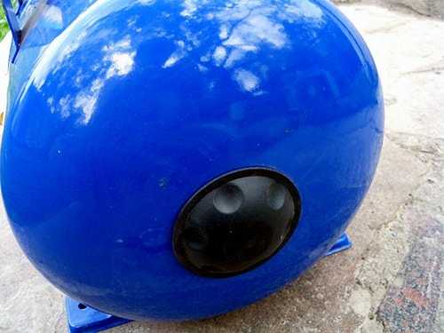 В расширительном баке установлена грушевидная резиновая диафрагма, в которую насос накачивает воду. Между диафрагмой и металлическим корпусом бака находится воздух под давлением. Для определения давления, а так же для накачки или спуска воздуха, в задней части резервуара предусмотрен специальный клапан (нипель). Давление воздуха в баке измеряется с помощью манометра, предназначенного для измерения давления в автомобильных колесах. При необходимости производится подкачка воздуха автомобильным насосом.