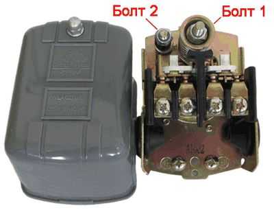 Для регулировки давления предусмотрены два болта, которые находятся под крышкой реле.