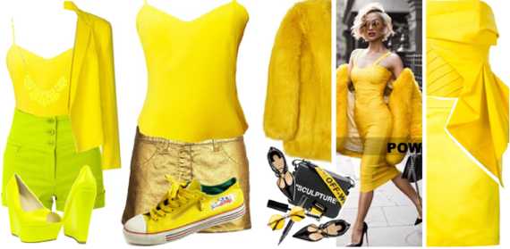 Сочетание желтой гаммы в одежде – спорное. Если переборщить с однотипными оттенками — будет смотрится броско и не сбалансированно, но если сочетать с другими тонами желтого, например, золотым или желто-зеленым, может получится вполне эффектно.
