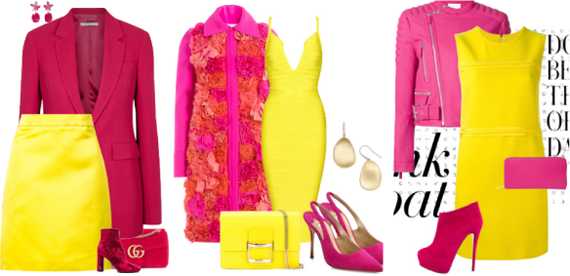 Лимонно-розовый в одежде может быть, как ярким, так и нежным. Если вам по душе броские образы, подберите к нему оттенки фуксии или ярко-розовый. В нежную желто-розовую гамму можно добавить белые элементы, это сделает сочетание более стильным.
