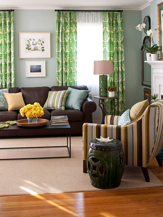 Зеленый цвет прекрасно впишется и в интерьер гостиной.