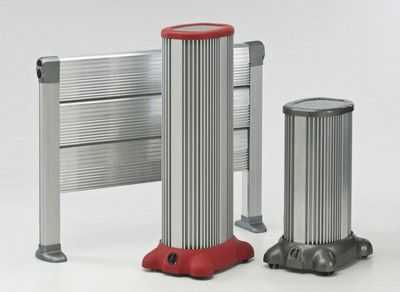 Такие конструкции отличаются мобильностьюДля улучшения циркуляции воздуха некоторые модели оборудуются вентиляторами. Пока комната не прогреется, их нужно держать включенными. Существуют также модели с функцией ионизации воздуха. Энергосберегающие напольные обогреватели для дома оснащаются специальными электронными термостатами.