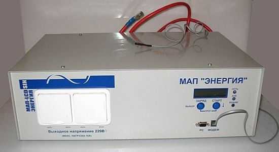 Рассчитанный на мощность до 900 Вт инвертор подключается к источникам напряжением 10-15 В. Выходной сигнал отличается стабильностью частоты 50 Гц. Защита от перегрузок срабатывает при нагрузке более 1300 Вт. Прибор предусматривает обратное преобразование из 220 В в 12 В и используется как пускозарядное устройство. МАП «Энергия» 900 считается одной из лучших моделей на рынке по критериям качества, надежности и возможностей, хоть и имеет высокую стоимость.