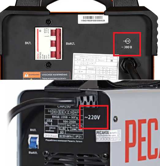 Одной из важных характеристик является питание сварочного инвертора. Одни инверторы могут питаться только от 380 В, другие только от обычной 220 вольтовой розетки. Соответствующая отметка всегда указывается на корпусе аппарата.