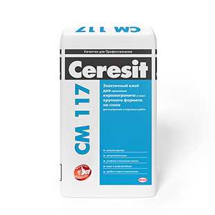 Ceresit СМ 117 – клеевой состав, предназначенный для крепления плитки к жесткому основанию. На качество фиксации не влияют условия окружающей среды, поэтому средство может использоваться как для внутренних работ при обустройстве покрытия пола с подогревом, так и для наружной отделки различных объектов, включая крытые бассейны. Высокая адгезия практически исключает сползание плитки с вертикальной поверхности. Для деформирующихся оснований может применяться в сочетании с эластификатором СС 83.