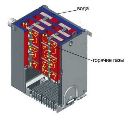 - конструкцию теплообменника. Чем больше ходов внутри него сделают продукты сгорания топлива, тем лучше