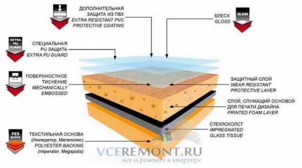 В гетерогенных видах линолеума несколько слоев: