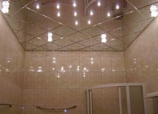 Современные зеркала весят немного, отлично переносят повышенную влажность и обладают некоторыми другими качествами, которые позволяют создавать из них потолочные поверхности.