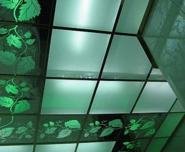 Конечно, такое оформление потолка применимо только в том случае, если оно не смущает соседей сверху. Впрочем, есть и другой вариант, когда витраж составляет только переднюю часть панели, а за ним монтируется подсветка.