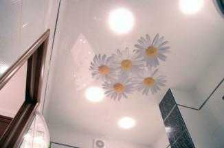 Натяжной потолок в ванной. Плюсы и минусы использования такого типа потолков, секреты монтажа и рекомендации по уходу в отдельной публикации нашего портала.