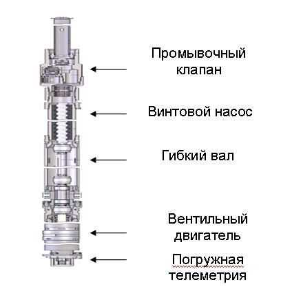 Винтовой насосный агрегат представляет собой насос объемного типа, принцип действия которого основан на вытеснении жидкости одним или несколькими винтами, вращающимися в корпусе, оборудованном винтовыми канавками.