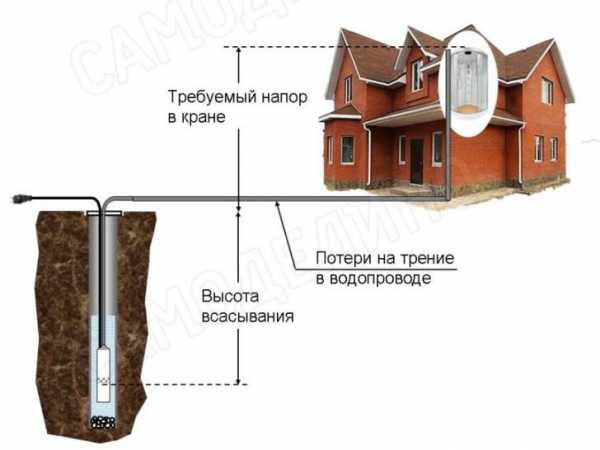Чтобы определить необходимый напор нужно сложить такие величины, как высота Вашего дома в метрах, глубину скважины, прибавить дополнительно шесть метров и умножить полученный результат на коэффициент потерь напора в трубопроводе, который составляет 1,15.