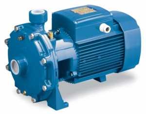 Центробежными называют насосы с крыльчаткой-турбиной, вращающейся с помощью электродвигателя и помещенной в рабочую камеру, которая выполнена в форме улитки. Входное отверстие расположено в центральной части, а выходное – на периферии камеры. При вращении крыльчатки центробежная сила отбрасывает воду из центра к краям, образуя в центре зону разрежения, в которую жидкость поступает через входной патрубок. Отброшенная вода отводится через патрубок на периферии и поступает в подающий трубопровод. Чтобы повысить напорные характеристики и производительность центробежного насоса устанавливают последовательно несколько камер. В этом случае характеристики агрегата в целом равны сумме соответствующих параметров всех камер.