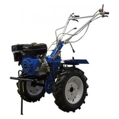 Это китайская модель с 4-х тактным бензиновым двигателем бензиновый с воздушным охлаждением, объемом также 270 см3. Благодаря увеличенному размеру резинового колеса, мотоблок имеет повышеную проходимость, что позволяет обрабатывать почву даже при высоких посадках (к примеру, картофель). Ширина захвата фрез составляет диапазон от 850 до 1050 мм. В коробке передач мотоблока 3 скорости: 2 вперед и одна назад.