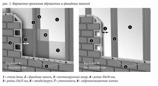 Крепить панели непосредственно на стены не имеет смысла, так как очень мало поверхностей отличается ровностью. Прижатые к стене панели создадут препятствие для свободного воздухообмена, что чревато выпадением конденсата на внутренней стороне сайдинга и последующим отсыреванием стены, а это, в свою очередь, грозит ее преждевременным разрушением. Даже подкладка под панель паропроницаемой мембраны не станет решением проблемы, потому что выходить из помещения парам будет затруднительно.