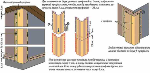 Внимание: установленный профиль не должен провисать внизу, а лежать на фундаменте. Сверху, между крайней точкой профиля и карнизом, должен присутствовать промежуток в 20–25 мм. Благодаря этому смещение отделки после просадки дома будет не так заметно.