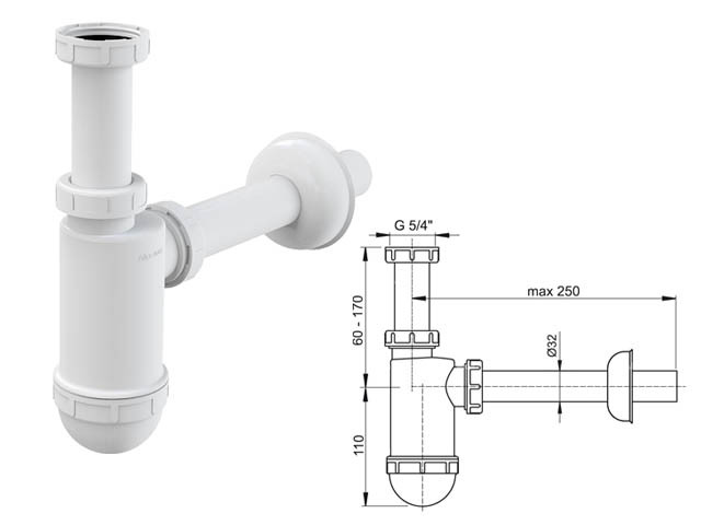 Сифон для умывальника Alсaplast Ø32 DESIGN, цельнометаллический (A400)