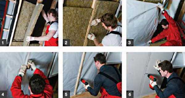 Когда для черновой отделки стен используют гипсокартон, мембрану крепят скобами либо оцинкованными гвоздями, при этом гладкой стороной она обращена к утеплителю и максимально плотно к нему прилегает.