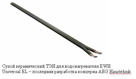 Впрочем, еще одним методом борьбы с накипью является установка «сухого» ТЭНа – такой нагревательный элемент устанавливается в прибор в специальной защитной капсуле (трубке), которая герметична и ограждает ТЭН от контактов с водой. В этом случае ТЭН сначала нагревает трубку, а уже нагретая трубка передает тепло воде в баке. Такие «сухие» нагревательные элементы были изобретены в середине 90-х годов во Франции.