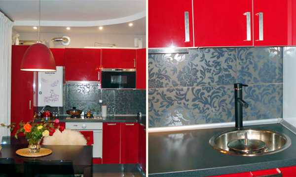 Дизайнеры советуют выбрать мозаическую плитку и совмещать в ней красные, серые и черные элементы. Такой кухонный фартук будет гармонировать с занавесками или шторами красного цвета.