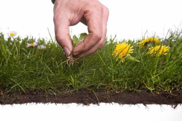 Чтобы вывести сорняки с газона, перед его посадкой необходимо выдернуть некоторые многолетние растения с земли, а также прополоть всю почву. Имеющиеся сорняки необходимо вырывать вместе с корнем.