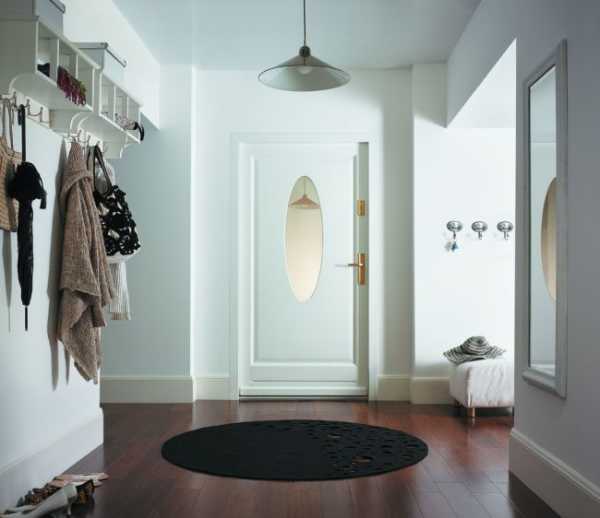 Входная дверь и стены в одном цветовом решении для тех, кто любит идеальное сочетание в интерьереДля небольших прихожих или при низких потолках решить проблему поможет стеклянная поверхность или прикрепление зеркала на входную дверь. Иногда достаточно расположить узкую полоску, если дверь располагается напротив окна, чтобы получить эффект дополнительного окна.