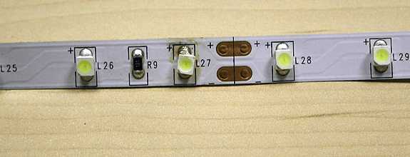 Также при выборе советуем обратить внимание на характеристики резисторов. В качественных изделиях сопротивление резисторов не менее 150 Ом (маркировка 151) либо 300 Ом (301). Если LED лента дешевая и обладает сомнительным качеством, резистор может иметь сопротивление 100 Ом (101).