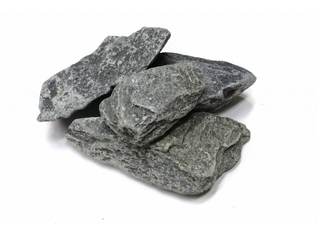 Данная горная порода имеет более плотную и долговечную структуру, чем диабаз. Внешне камни для бани талькохлорит сдержанны, но интересны и обладают самыми разными оттенками серого цвета.