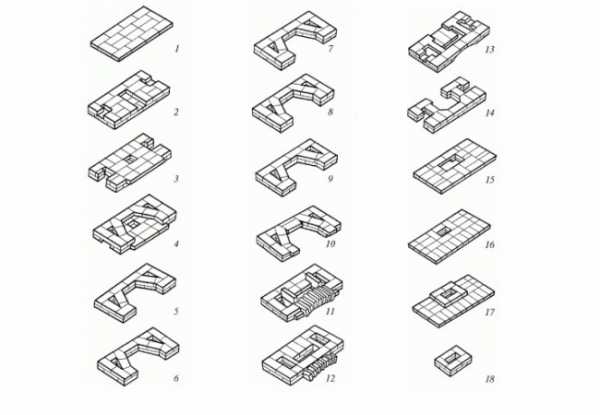 Приведем самый простой пример, показывающий, как осуществляется кладка камина своими руками. Необходимо отметить, что существует более функциональная порядовка камина, но она доступна при желании на специализированных ресурсах, поэтому мы выбрали простую схему, чтобы показать принцип работы с проектом.