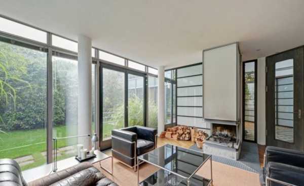 Камин, строенный в стеклянную стену – нечастое дизайнерское решение в современных интерьерах. Но для этой гостиной, расположенной на застекленной веранде загородного домовладения, он стал наилучшим вариантом исполнении.