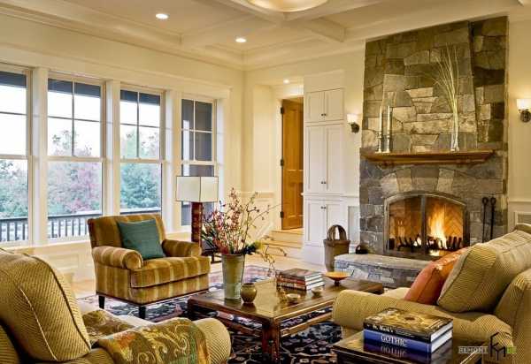 Дизайн гостиной с камином в квартире, лучшие идеи