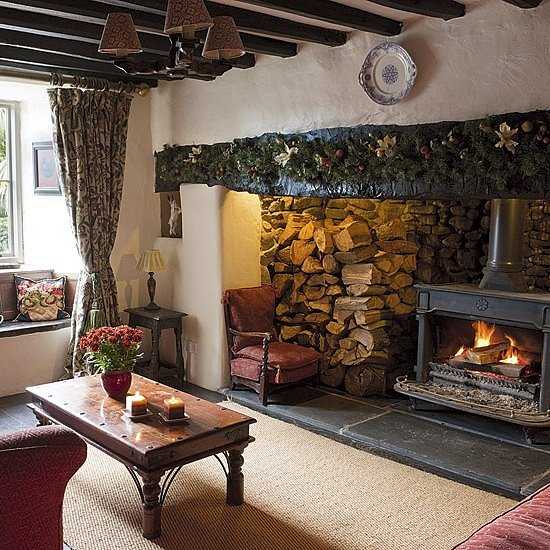 Интерьер загородного дома с камином фотоДалее необходимо определиться с типом наиболее доступного энергоносителя, выбор которого также зависит от того используется дом для временного проживания или постоянного.