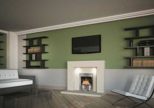 Этот вид каминов позволяет регулировать температуру, при этом также согревает и выглядит современно и стильно.