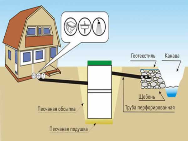 Схема отвода воды в дренажную канаву.